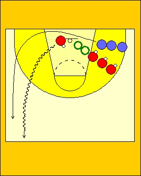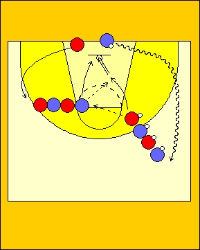 Due gruppi sulle due metà campo (DIAG.2) Dai e vai: due file come da diagramma. Chi tira va nella fila di passaggio e chi passa va a rimbalzo e poi nella fila con palla.